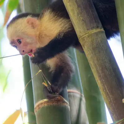 Un comité de pot de départ nous attend… de petits capucins à la mine effrontée. Pendant que nous tentons tant bien que mal de capturer ce moment magique avec nos appareils photos, ils jouent les acrobates entre les branches et des écureuils s’en donnent à cœur joie.