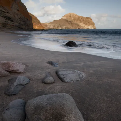 La descente vers la mer permet de changer complètement d’ambiance. On croise quelques chèvres, très à l’aise sur les pentes abruptes. Puis la Playa de Zapata apparaît. Une plage de sable noir, accessible uniquement à pied ou par la mer. Aucun aménagement, seulement quelques voiliers au mouillage. Le sentiment d’isolement est total.