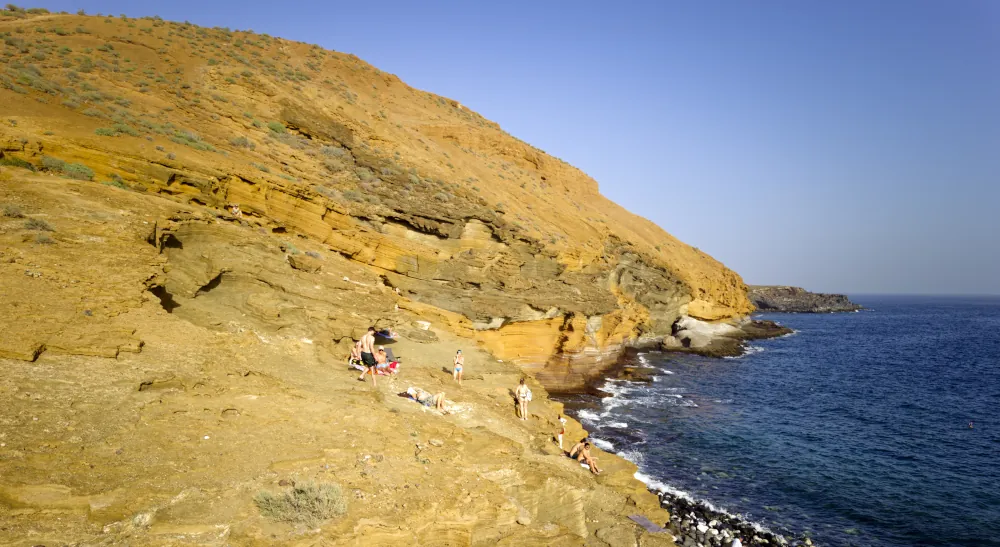 Les plages situées autour de Montaña Roja sont vastes et exposées. Elles sont très fréquentées en journée, notamment par les kite-surfeurs lorsque les conditions de vent sont favorables. Certaines zones sont historiquement fréquentées par des pratiquants du naturisme.